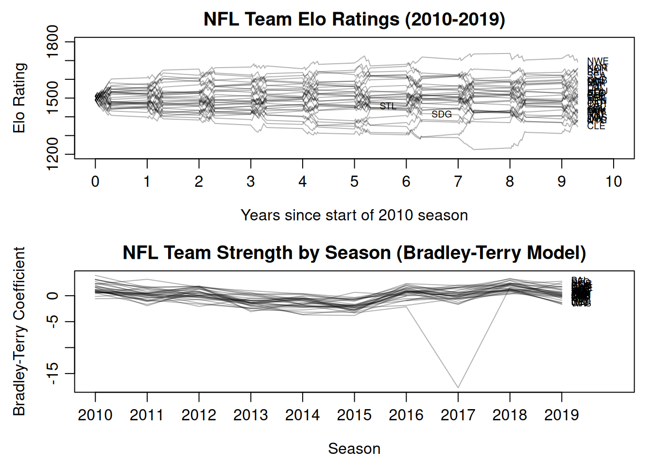 main = "NFL Team Strength by Season (Bradley-Terry Model)",